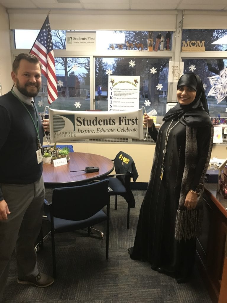 Ms. Jebril and Mr. Rummel love their new “Students First” Roll Up sign! Thank you Ms. Makled, Ms. Hicks and Dr. Maleyko! 🙂